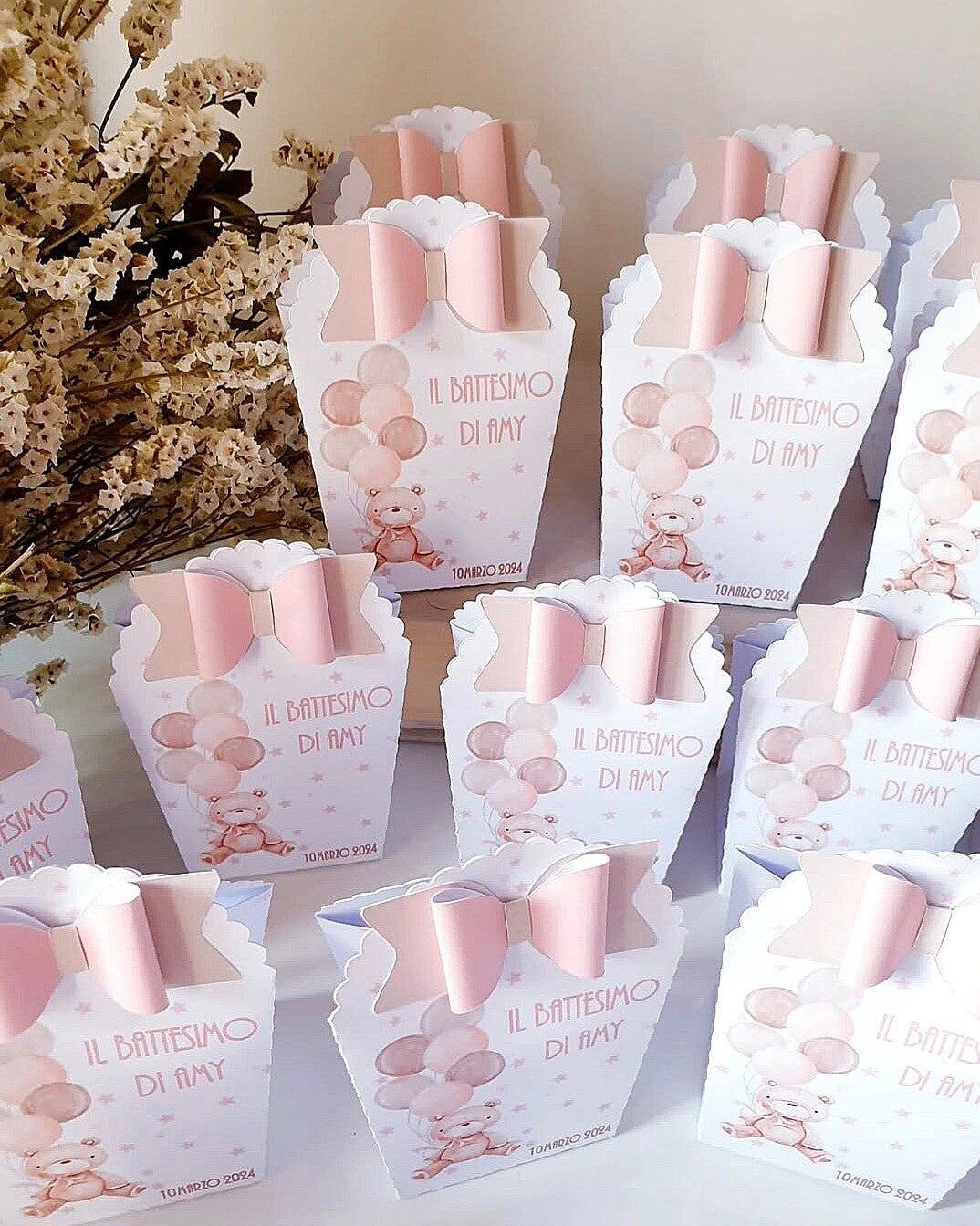 Le nostre scatole in cartoncino ideali per regalare i confetti per il tuo evento, sia matrimonio, battesimo ,comunione o nascita, in modo elegante e unico. Con la possibilità di aggiungere qualsiasi grafica e frase desiderata, puoi creare un packaging che si distingue e lascia un'impressione duratura.